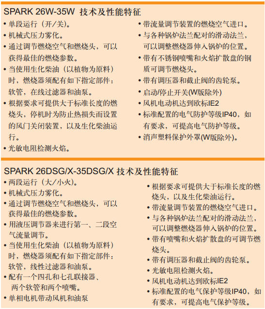 根據(jù)要求可提供大于標準長度的燃燒頭,停機時為防止熱損失而設置的風門關閉裝置,以及生化柴油運行。